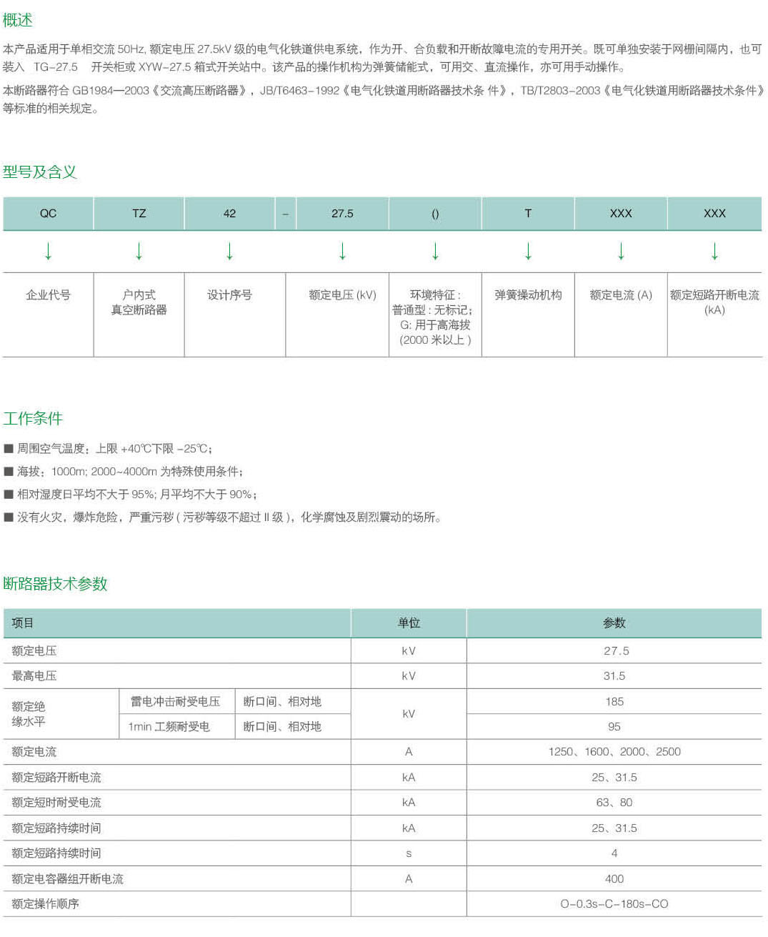TZ-27.5戶內(nèi)單相交流高壓真空斷路器